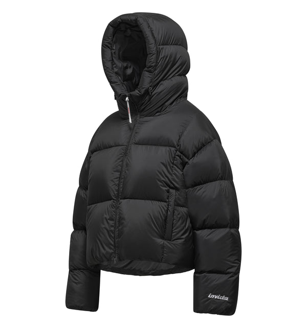 - Realizzato in una silhouette corta con imbottitura in vero piumino e piume per un calore avvolgente