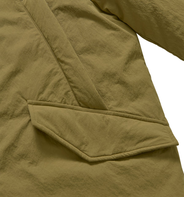 Affronta i giorni più freddi con questo parka lungo da uomo, dotato di imbottitura sintetica Sorona® che offre calore simile al piumino. L'isolamento di peso medio trattiene il calore senza aggiungere volume, garantendo libertà di movimento durante il giorno. Il guscio in nylon resistente all'acqua protegge dall'umidità e dalla pioggia leggera. Il cappuccio fisso, completamente foderato in pile sherpa, garantisce comfort e calore. La cerniera frontale con doppio cursore è nascosta da una pattina con bottoni a pressione, garantendo una protezione extra dal vento. Le tasche angolate per le mani, sono foderate in pile, così da offrire calore nelle giornate più fredde.