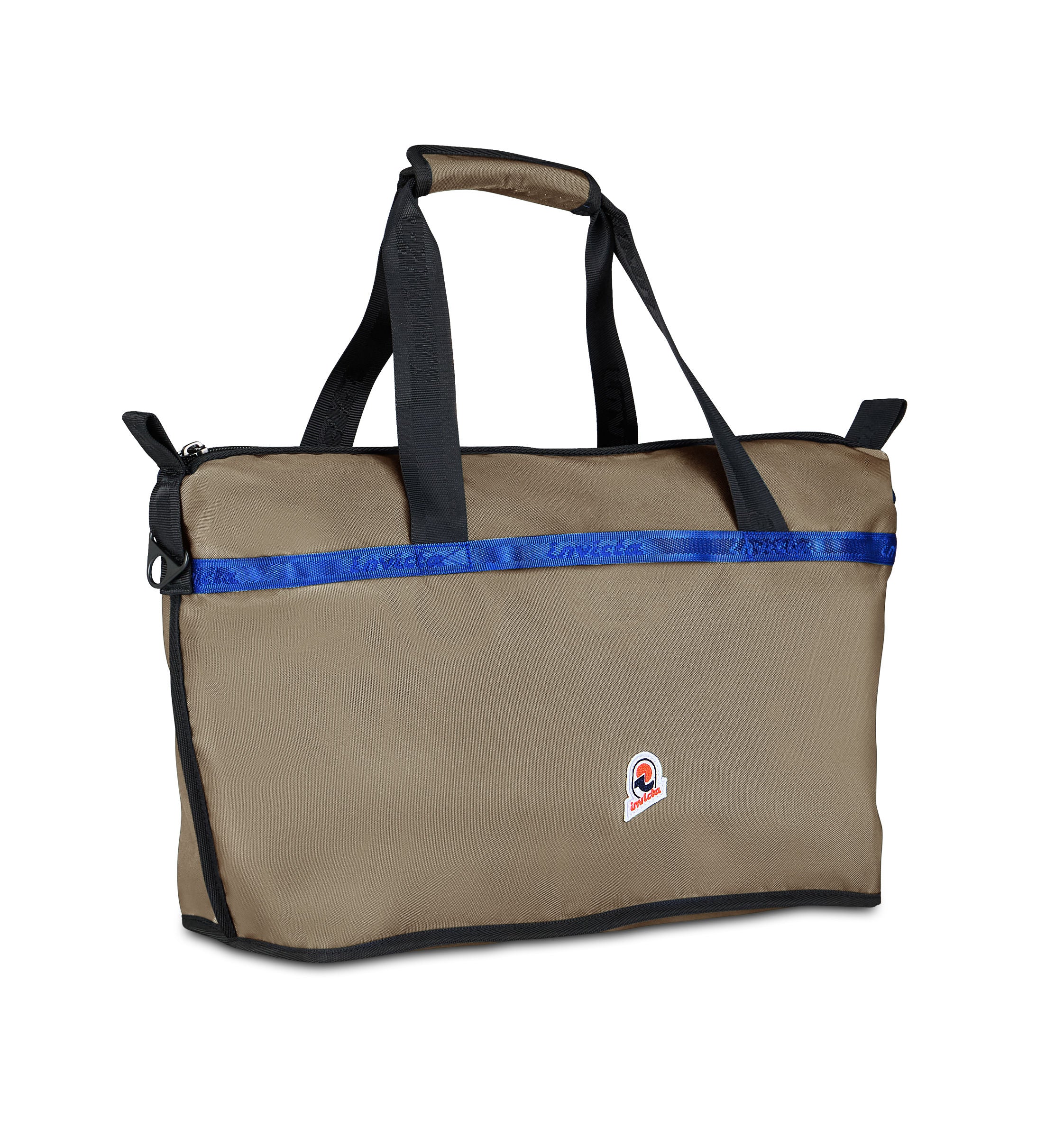 Essenziale borsone mono scomparto per viaggi brevi dotato di maniglie per il trasporto con impugnatura avvolgente e tracolla amovibile con nastro regolabile, nastri jacquard, patch Invicta ricamato, accessori in metallo, tirazip personalizzato ed etichetta alta definizione