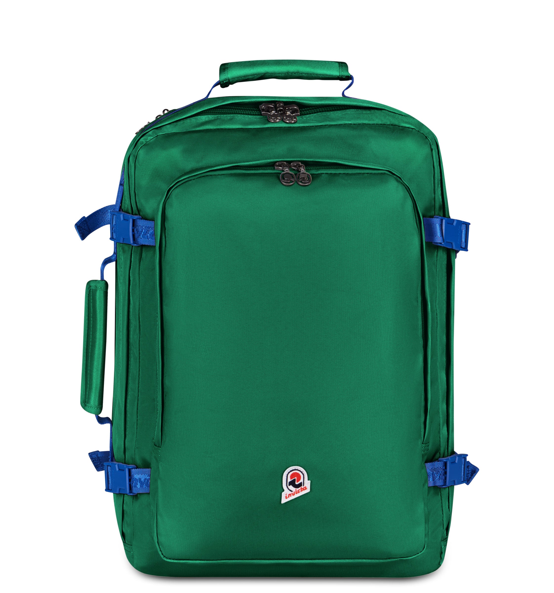 - Zaino mono scomparto con fondo rinforzato, caricamento frontale e apertura a conchiglia, apertura con zip e sistema di sicurezza (lucchetti non inclusi). Maniglia superiore e laterale per il trasporto con impugnatura avvolgente, nastri laterali regolazione del volume, nastri jacquard, patch Invicta ricamato, fibbie e tirazip personalizzati.