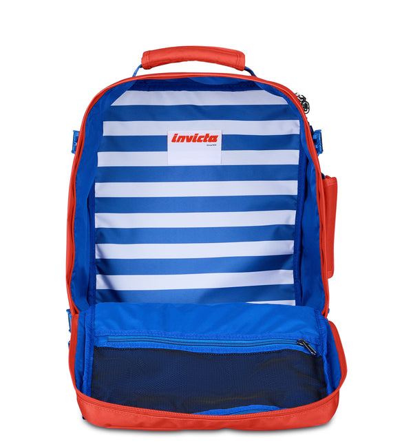 Perfetto per trasferte di lavoro e weekend, FREEWAY S Invicta Voyage è uno zaino bagaglio a mano da 28,5 litri compatibile con il posizionamento sotto il sedile, resistente all’acqua, leggero e pratico. Il caricamento frontale con apertura a conchiglia facilita l’organizzazione di indumenti e accessori, mentre lo scomparto laptop 15,6" con accesso diretto sul retro permette di estrarre rapidamente il computer ai controlli in aeroporto. Completano il modello tasca porta borraccia, nastro trolley e portanome Invicta incluso.