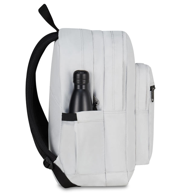 Uno zaino ma è come averne 3. Jelek ha tutto lo spazio di cui hai bisogno grazie ai suoi 34 litri di capacità. Due capienti scomparti all’interno dei quali ci sono tasche per ogni necessità: dal PC o tablet fino alla borraccia, ogni cosa è al proprio posto. Il tessuto è ottenuto dal riciclo di 31,4 bottiglie in PET da 500 ml mantenendo gli standard qualitativi dei nostri materiali. Fondo interno rinforzato a ribalta e spallacci e schienale imbottiti ti assicurano il giusto comfort anche a pieno carico.