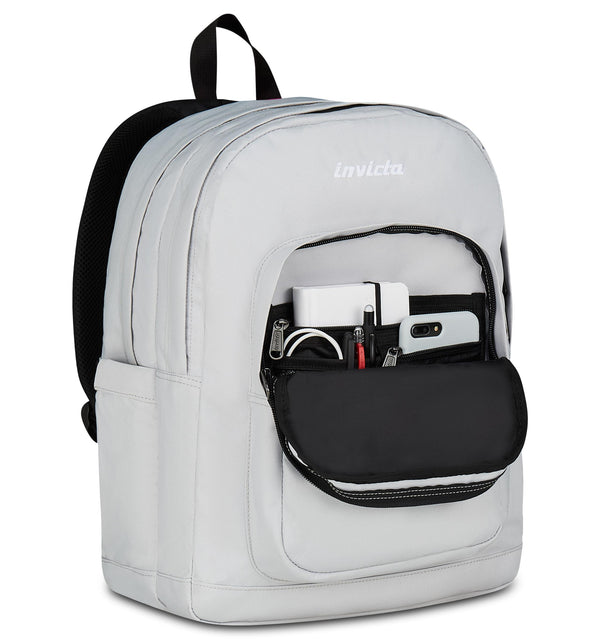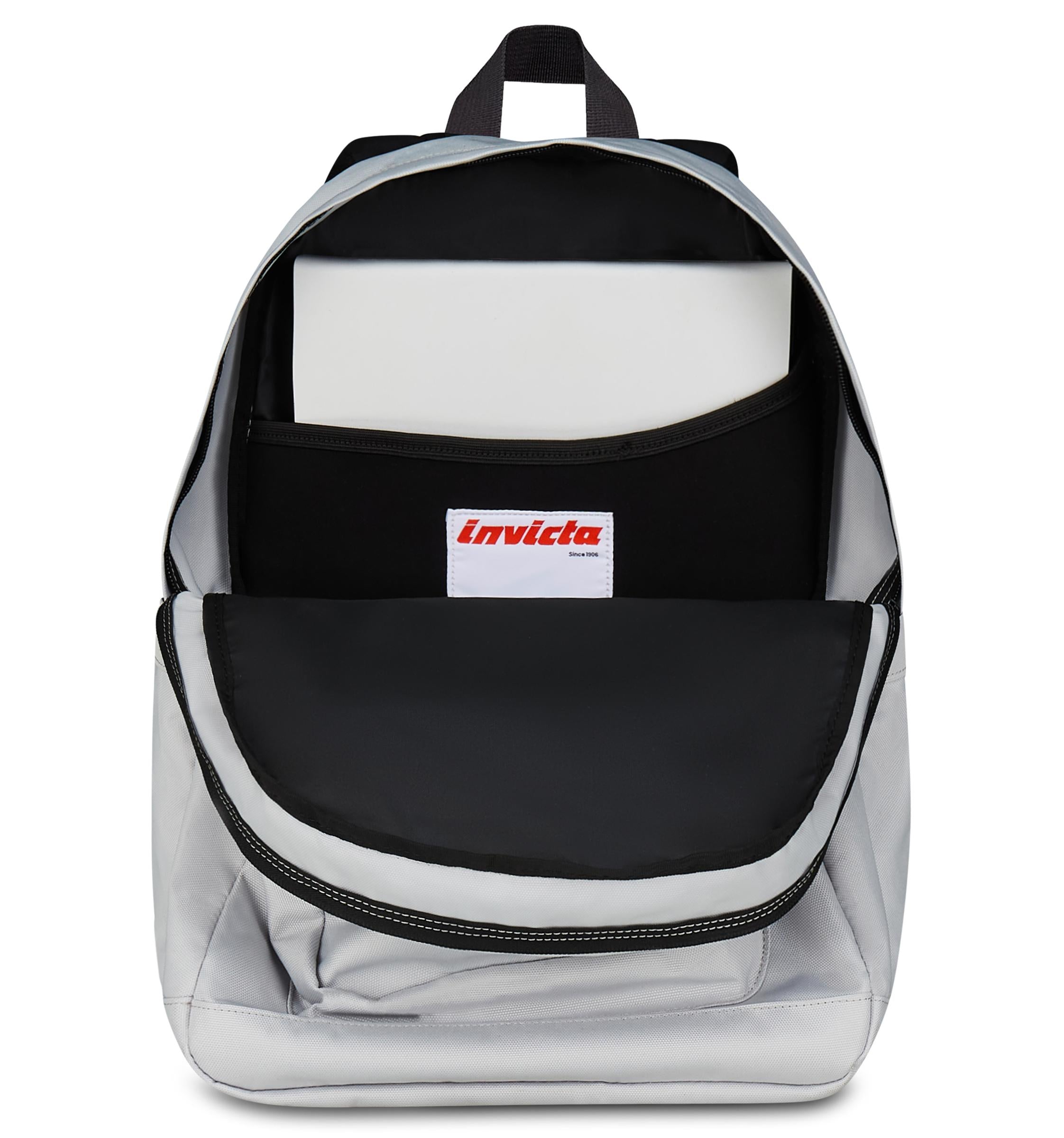 - Doppio scomparto, fondo interno rinforzato a ribalta, logo Invicta ricamato, etichetta alta definizione all’interno, tirazip con cordino.