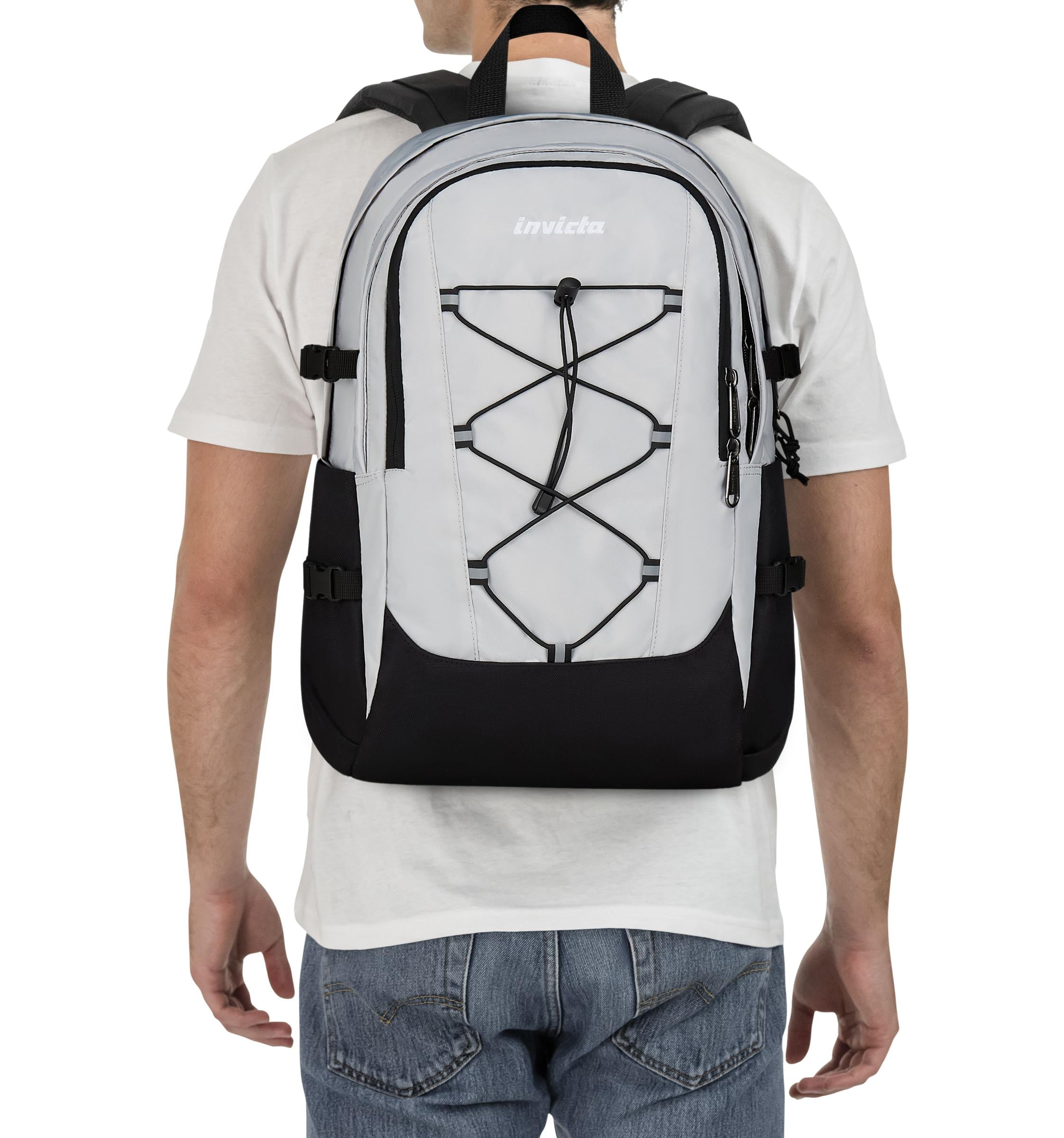 - Doppelfach, verstärkter Boden, abnehmbarer und verstellbarer Brustgurt, abnehmbarer und verstellbarer Hüftgurt, seitliches Kompressionssystem. Vorderes elastische Band mit reflektierenden Einsätzen, gesticktes Invicta-Logo, Etikett in hoher Auflösung innen, Reißverschluss mit Schlaufe.
