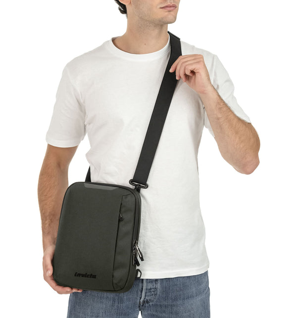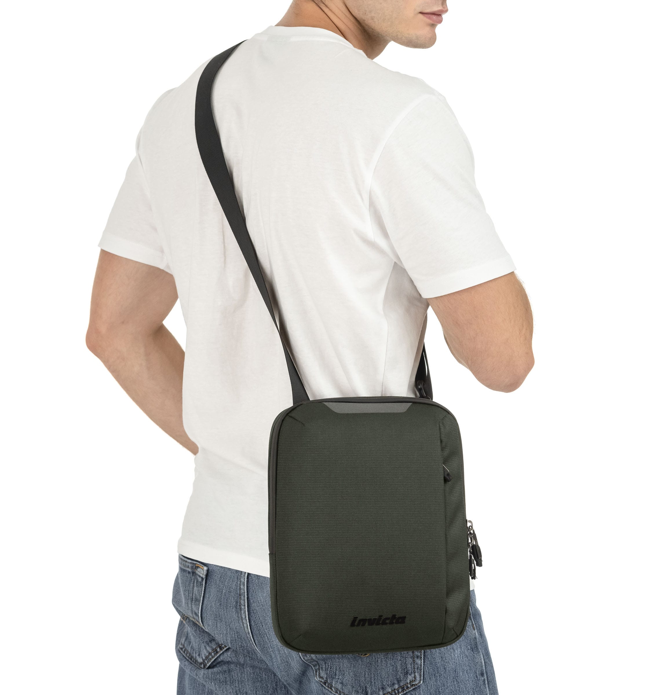Schultertasche mit Innentasche, die mit kratzfestem Stoff gefüttert und gepolstert ist. Externe Reißverschlusstasche vorne. Personalisierter Metall-Reißverschluss
