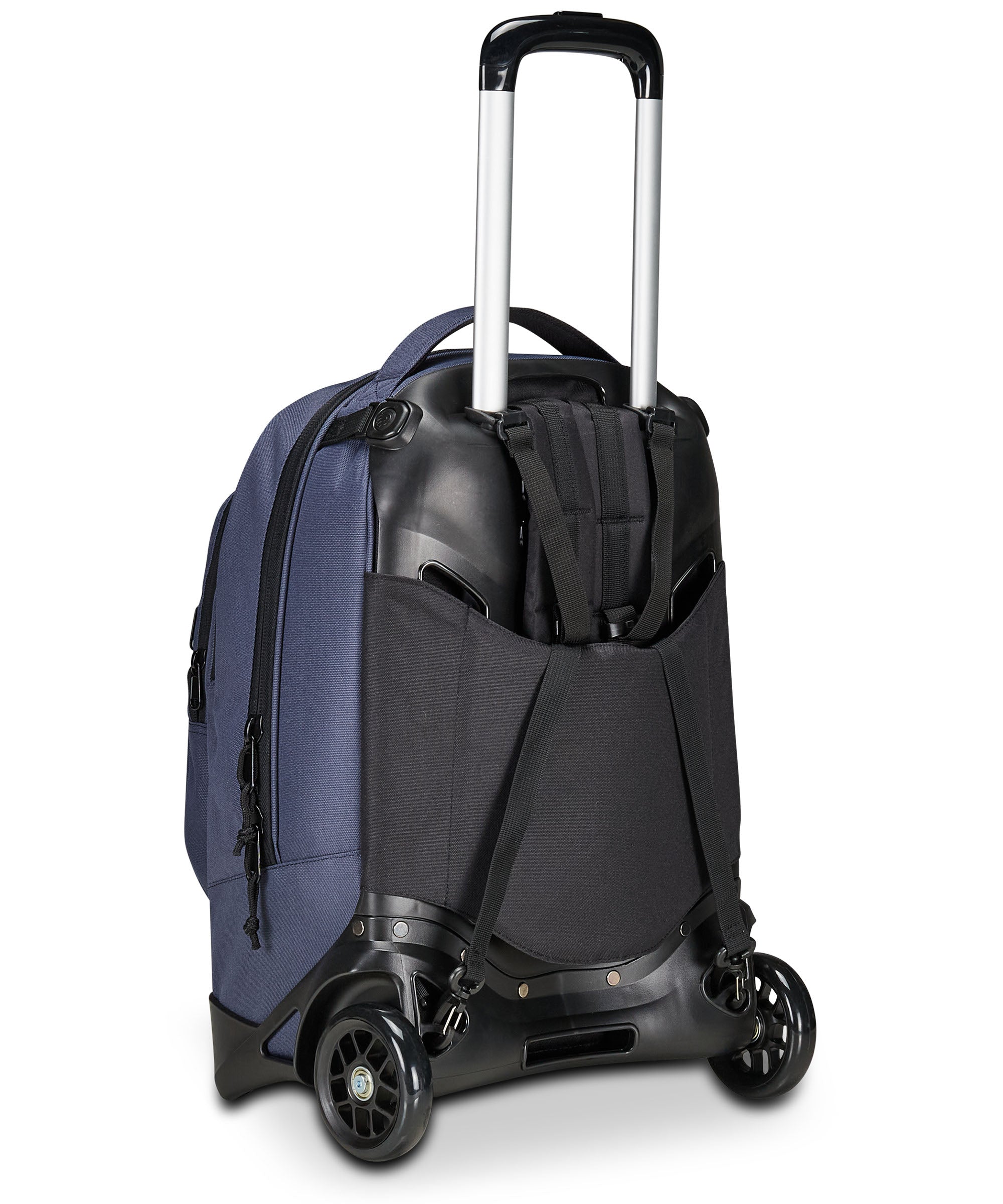 Ein echter Rucksack-Trolley. Der New Plug ist der vielseitige Rucksack auf Rädern, der sich mit wenigen Schritten in einen Trolley umwandeln lässt. Dank des 37 LT-Volumens ist er bequem, geräumig und kompakt, und passt sich unterschiedlichen Bedürfnissen an. Mit seinen 100-mm-Rollen und der doppelten Stange mit Crossover-System ist dieser Rucksack mit Trolley-Funktion ideal für diejenigen, die nicht nur Sicherheit und Strapazierfähigkeit, sondern auch ein umweltfreundliches Produkt suchen: Jeder Trolley New Plug trägt dank seines speziellen Polyestergewebes, das aus PET-Flaschen hergestellt wurde, zum Umweltschutz bei.