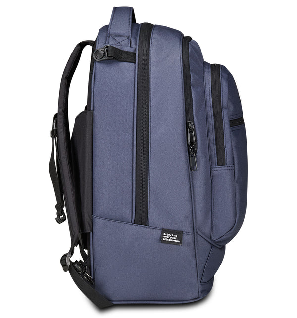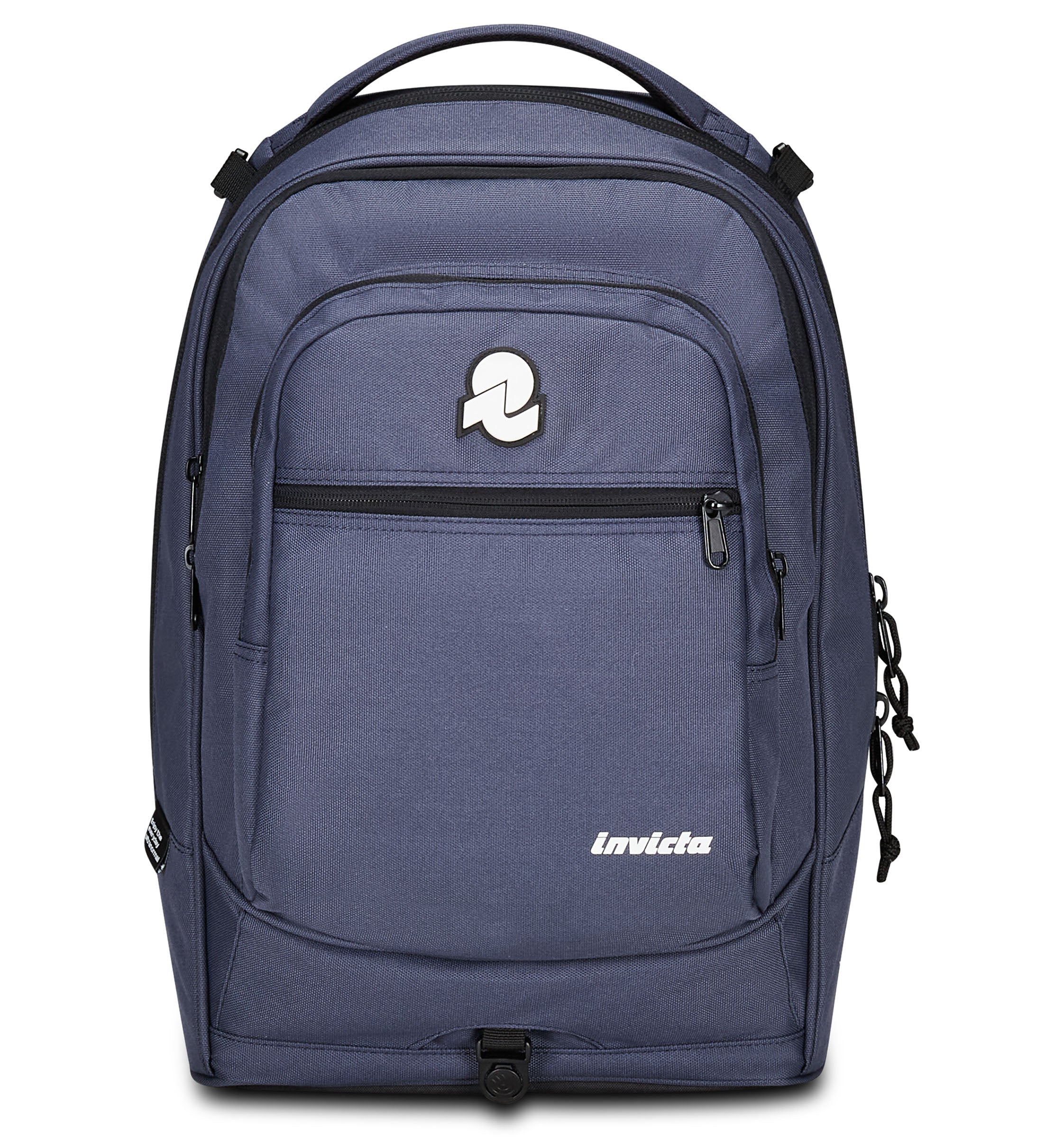- Zwei Taschen auf der Vorderseite; Innenfach mit Organizer; separates Laptopfach; Innenfach für die Trinkflasche.
