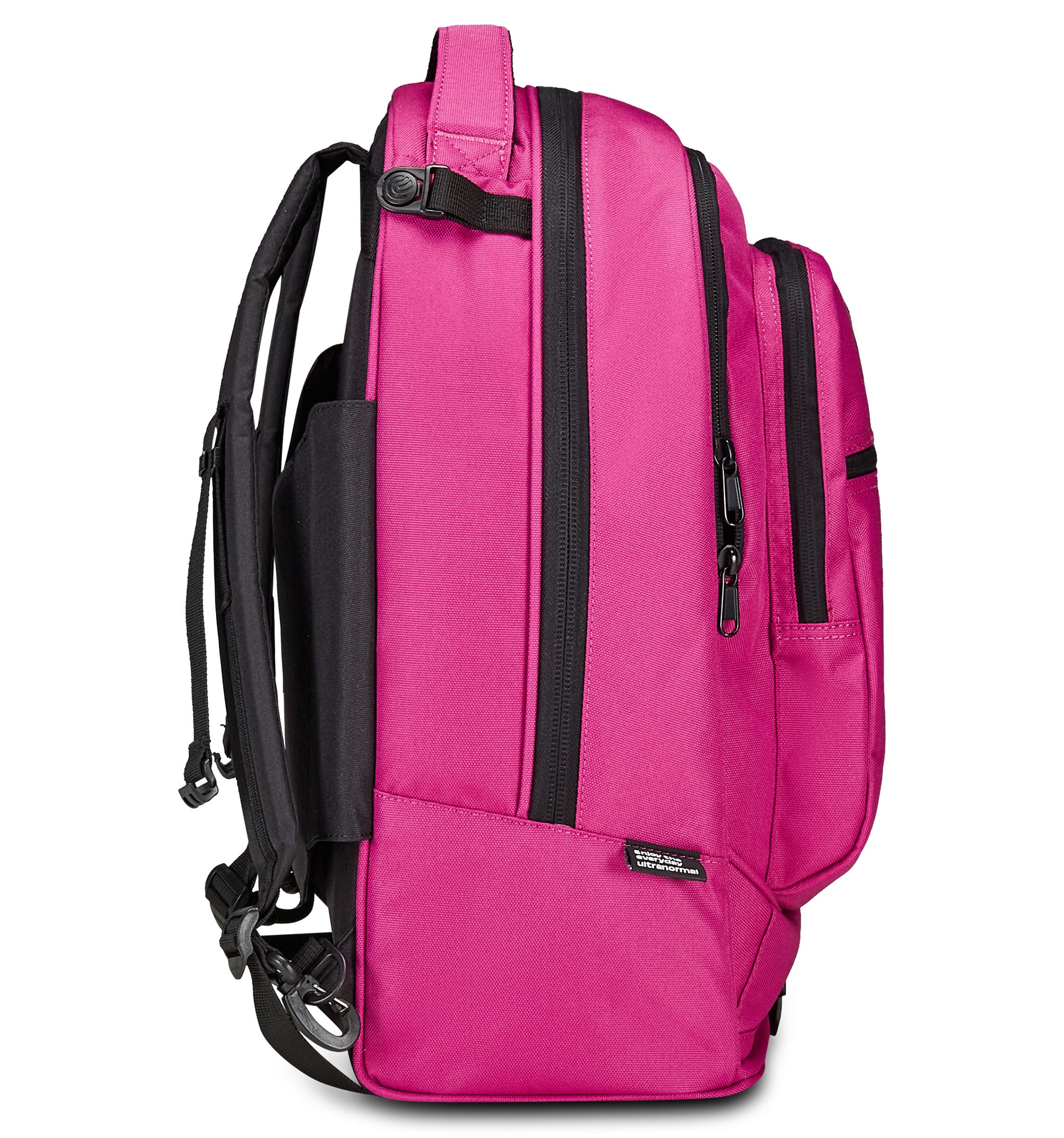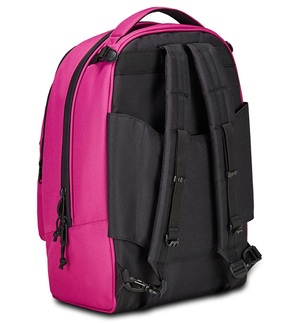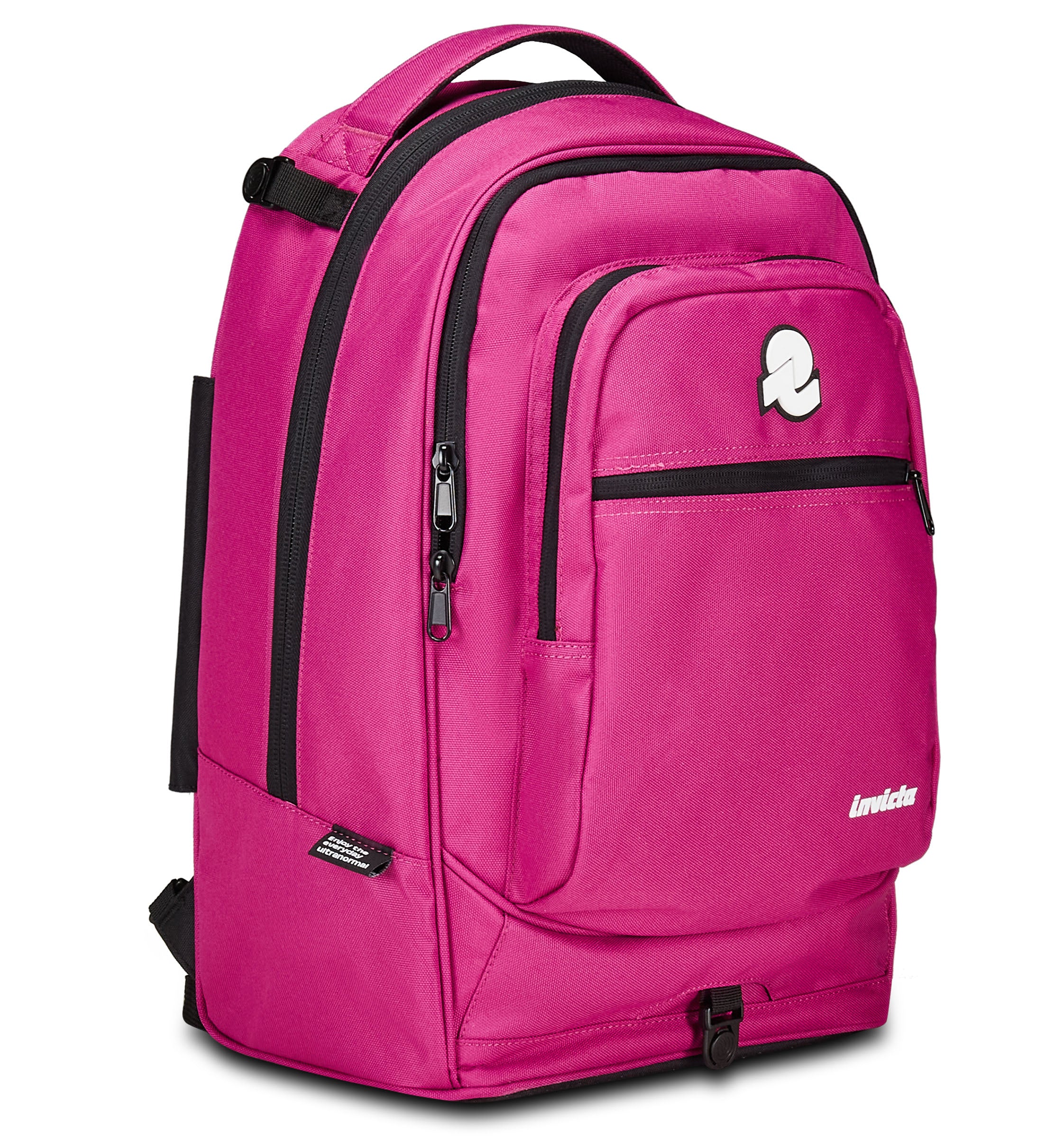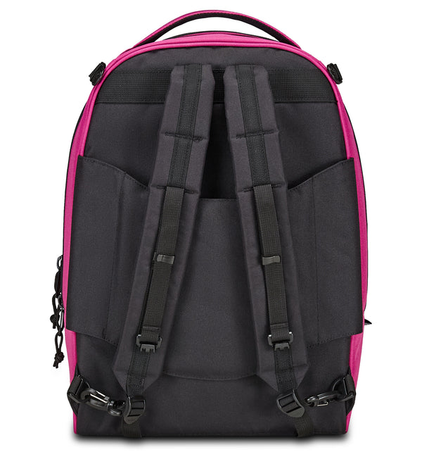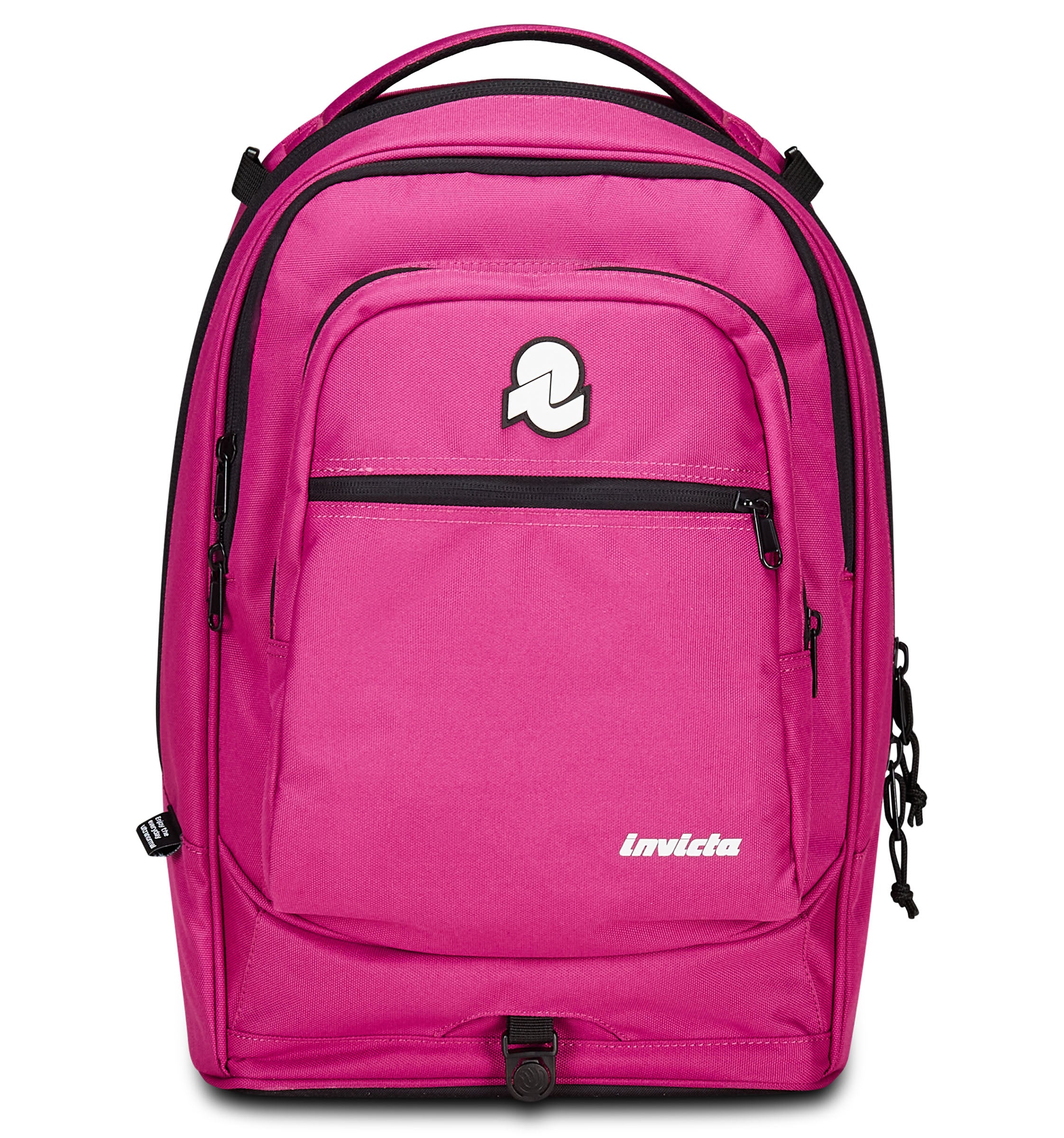 Zwei Taschen auf der Vorderseite; Innenfach mit Organizer; separates Laptopfach; Innenfach für die Trinkflasche.