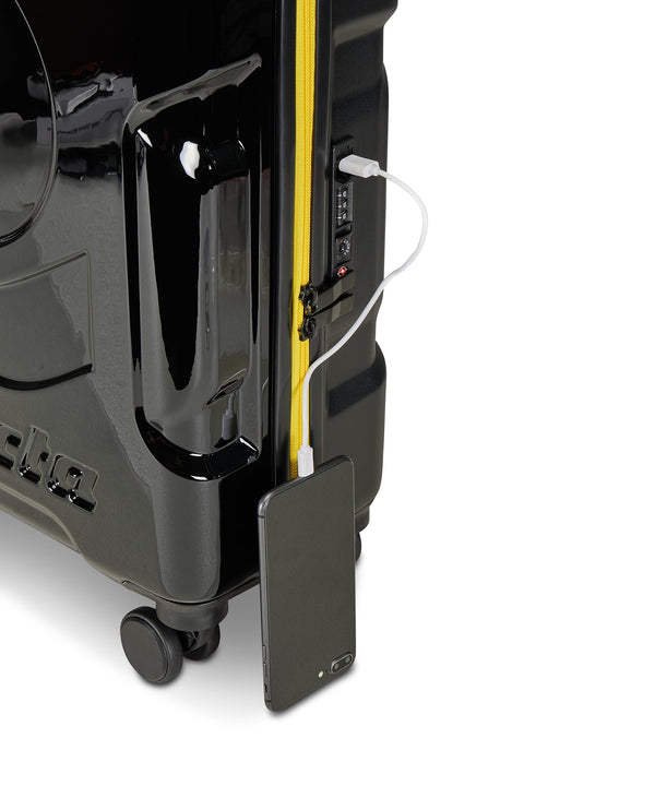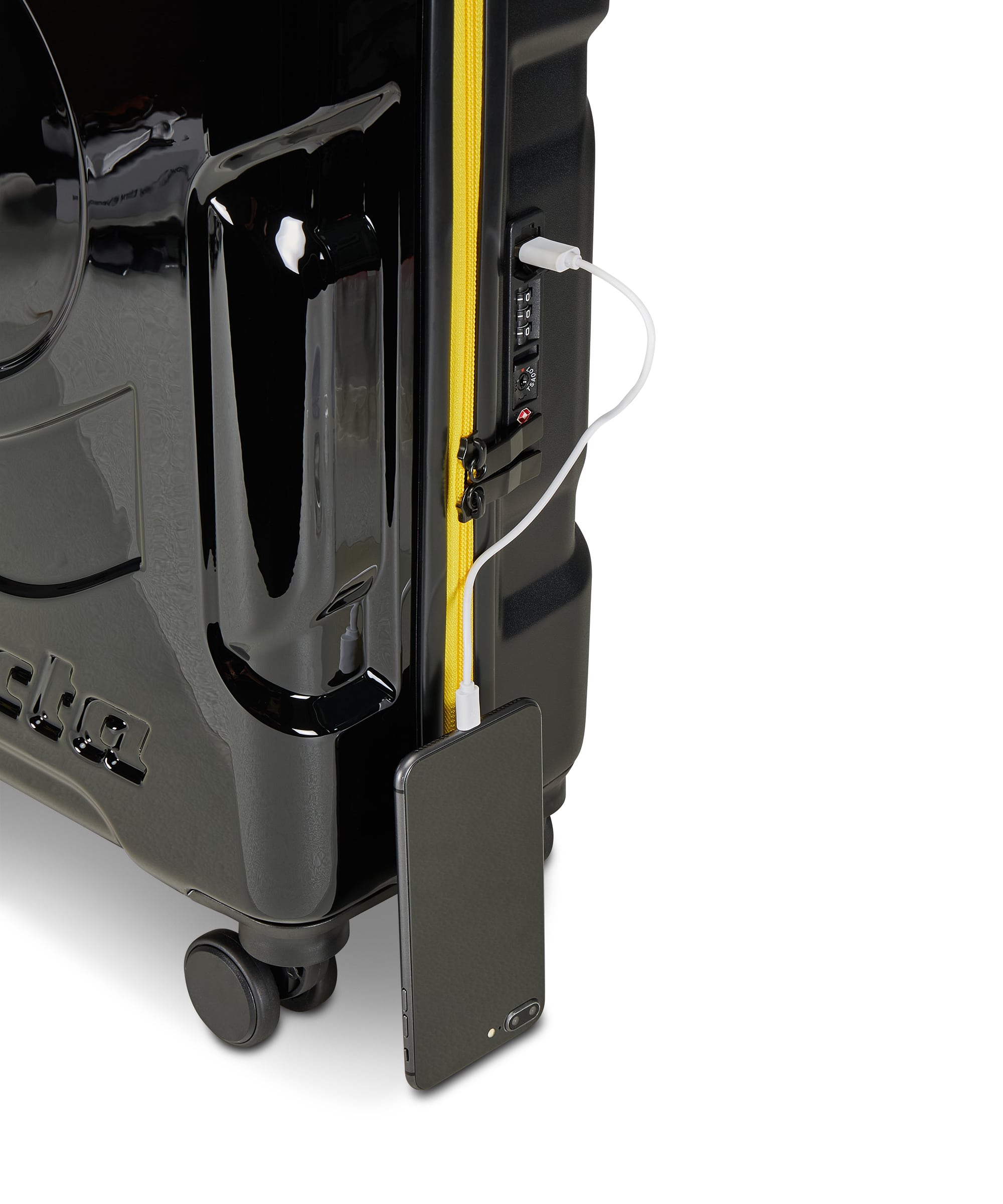 USB-Anschluss mit Innentasche für Powerbank. Integrierter Verschluss in Kombination mit TSA-System. Teleskopgriff mit Doppelstange und verstellbarer Stange. Doppelte 360°-Lenkrollen. Invicta-Anhänger abnehmbar.
