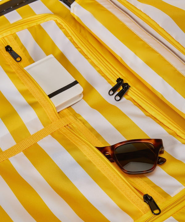 Der Invicta Travel Maket Trolley ist dank seines Teleskopgriffs mit doppelter Stange, verstellbarem Gestänge und doppelten 360°-Schwenkrädern einfach zu handhaben und leichtgängig. Er verfügt außerdem über ein integriertes Zahlenschloss mit TSA-System und einen USB-Anschluss zum Aufladen von Geräten. Er ist ein Kabinentrolley, der den von den meisten Fluggesellschaften geforderten Maßen entspricht. Ideal für ein entspanntes Wochenende oder eine Geschäftsreise.