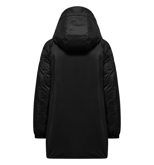 Giacca lunga da donna con imbottitura sintetica e cappuccio