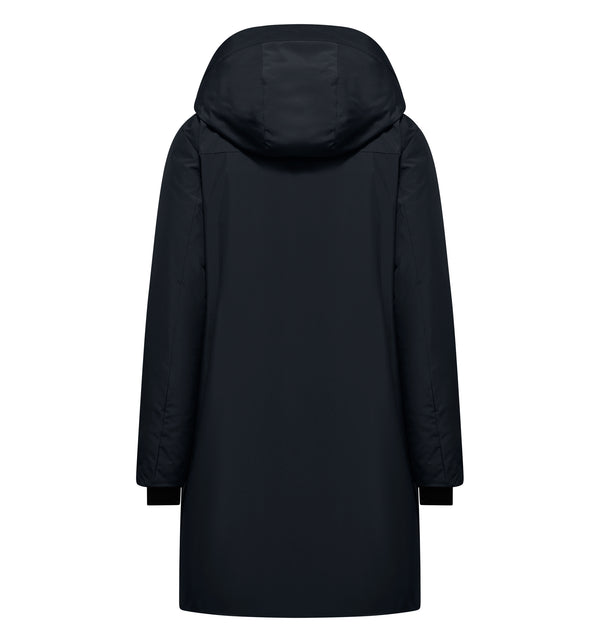 Insulation and Functional DetailsThe insulation in this parka uses Primaloft® Black Insulation Thermo Plume, a medium-weight synthetic padding that replicates the warmth of natural down and maintains thermal efficiency even in damp conditions. The recycled polyester fiber ensures heat retention, lightness, and long-lasting durability. The nylon lining makes dressing easier and reduces friction. This garment stands out for its reliable performance, practical materials, and a versatile silhouette suitable for everyday winter use.