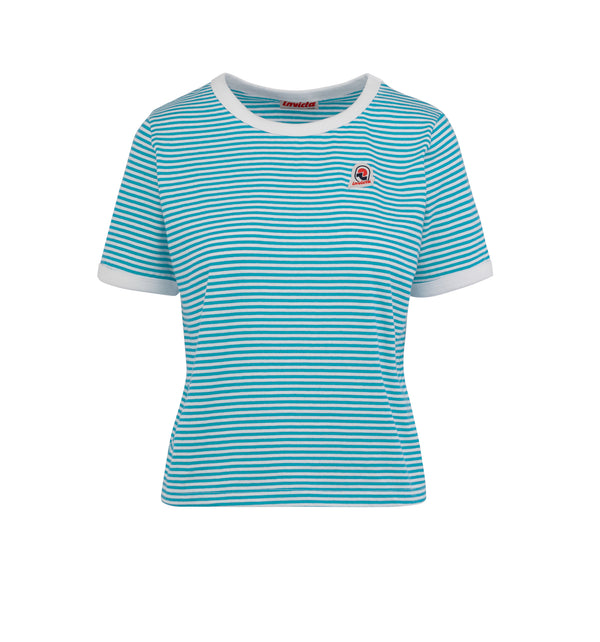 Women's short-sleeved T-shirt made from GOTS certified organic cotton. Striped model with a regular fit and a simple design.