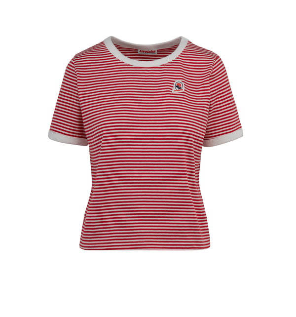 Women's short-sleeved T-shirt made from GOTS certified organic cotton. Striped model with a regular fit and a simple design.