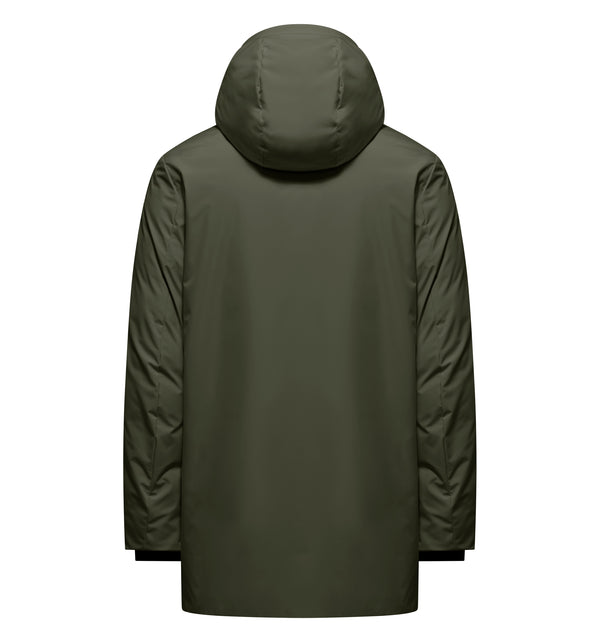 This men's long parka guarantees warmth and protection, ideal for facing the coldest days. The water-resistant outer fabric protects against moisture, while the anti-feather technology prevents the padding from shifting or escaping. The fixed hood, lined with soft fleece, offers extra protection against wind and low temperatures, combining practicality and style. The regular fit ensures comfort and freedom of movement, making this garment perfect for everyday use.