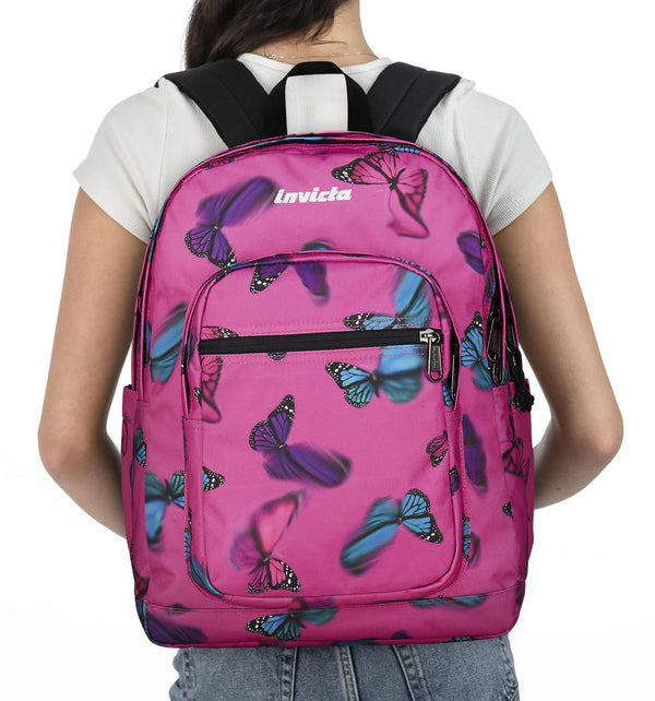 - Double frontal pocket, side pockets for bottle, utility pocket with organizer, inner laptop pocket 14" (up to 33x22,6x1,8 cm).