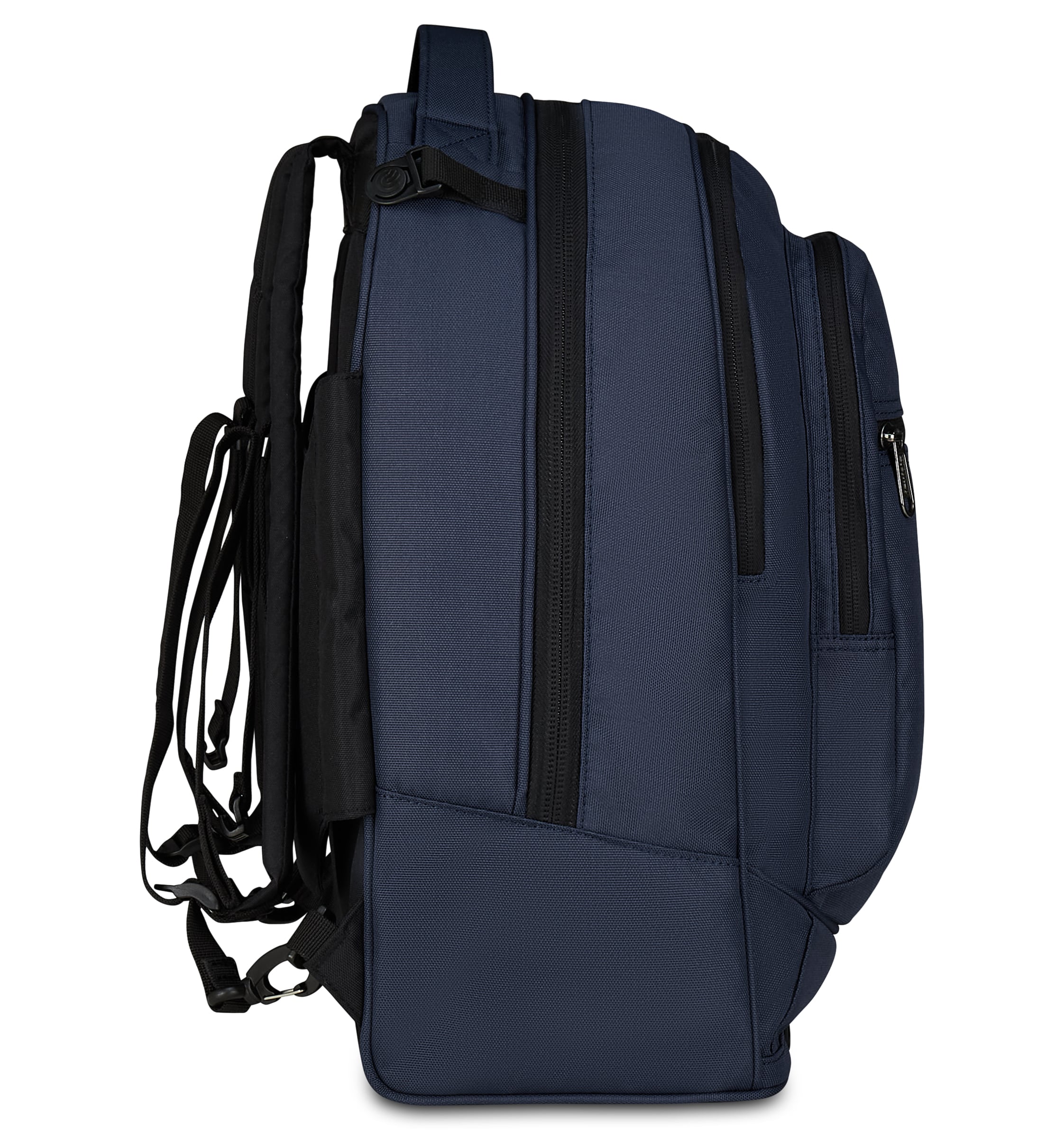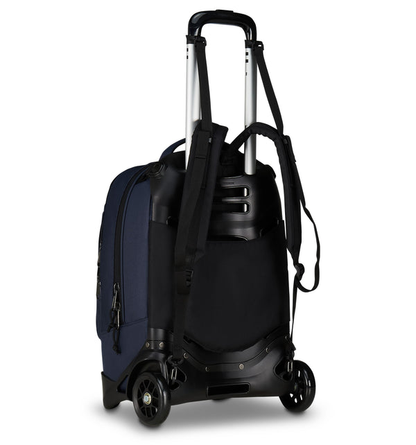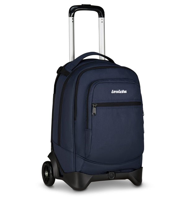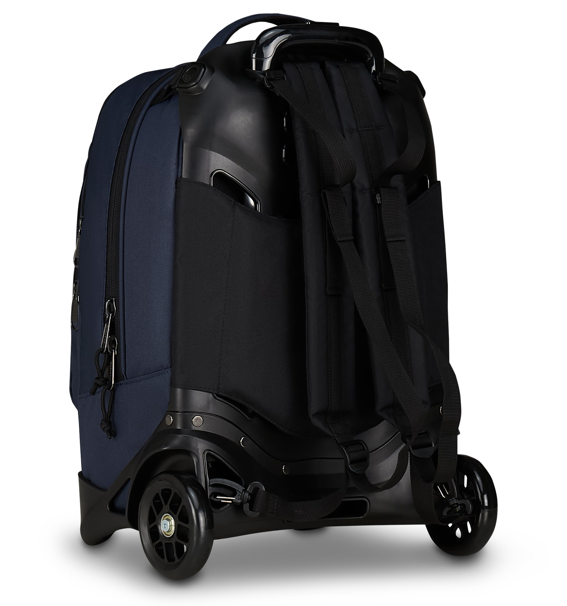ONE TROLLEY, ONE BACKPACK. New Plug is the versatile wheeled backpack that in a few simple steps turns into a backpack. Thanks to the 34 liters of internal capacity it is comfortable, spacious and compact and adapts to different needs of use. With its 100 mm wheels and the double bar with crossover system this wheeled backpack is ideal for those looking for control but also a recycled fabric: each Plug, thanks to its special polyester fabric, contributes to the protection of the environment by recycling 46 PET bottles of 500ml each. wheels and the double bar with crossover system this wheeled backpack is ideal for those looking for control but also a recycled fabric: each Plug, thanks to its special polyester fabric, contributes to the protection of the environment by recycling 46 PET bottles of