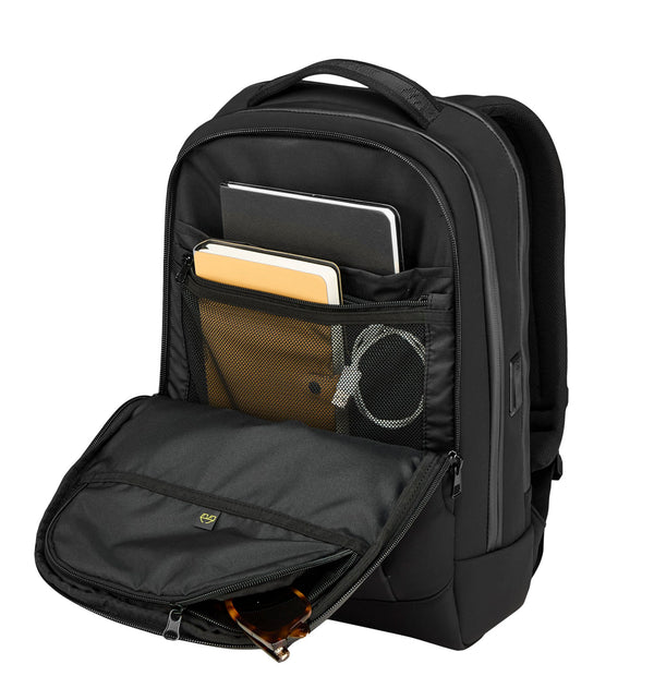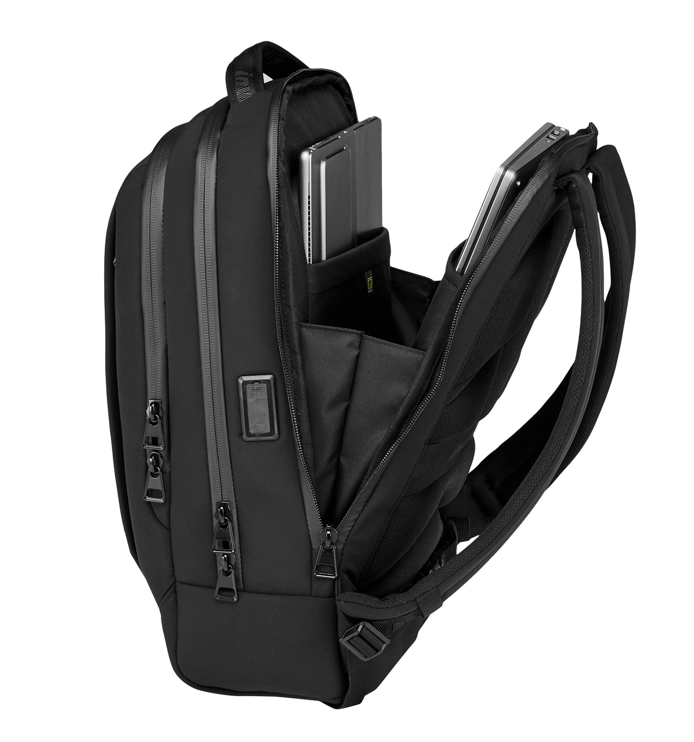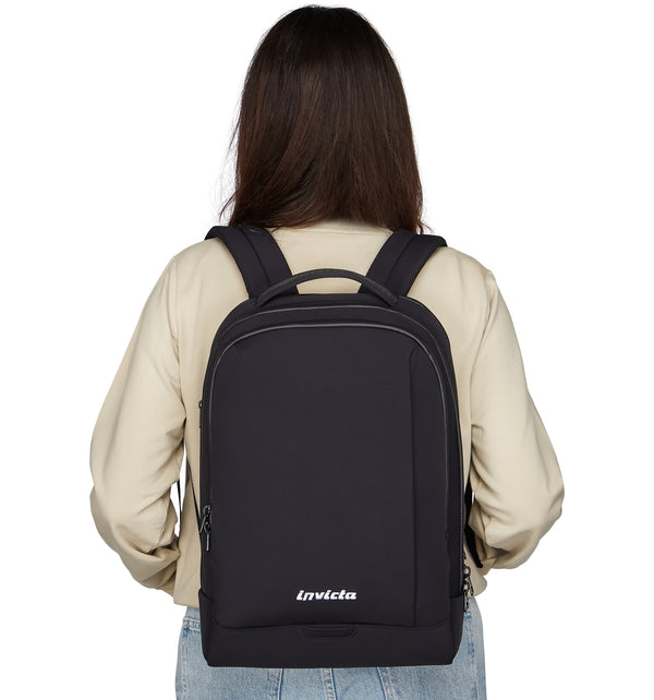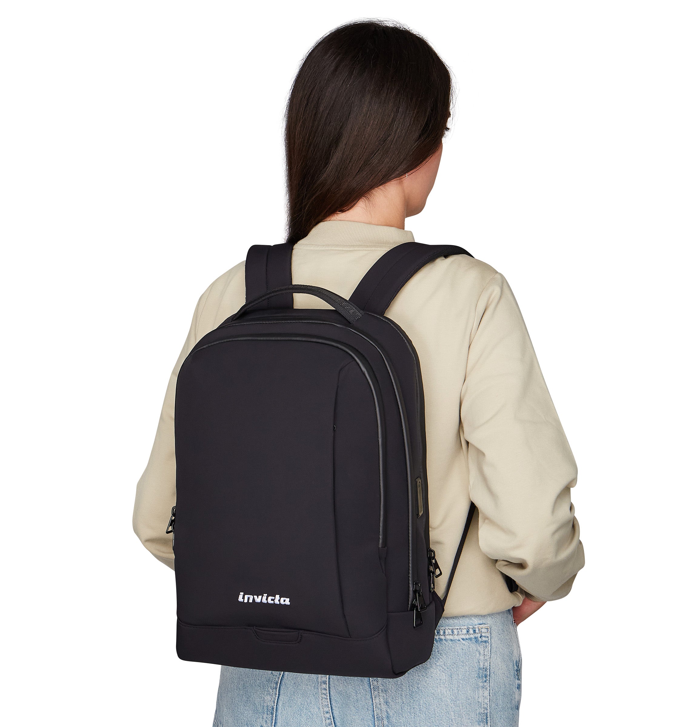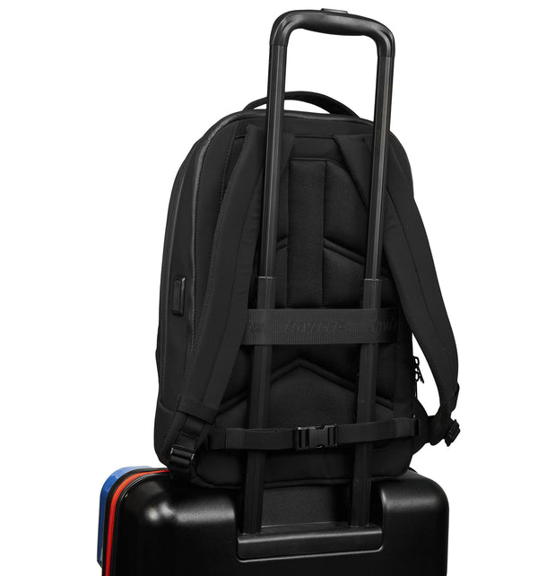 The office in a backpack: this is the Mate XS. A single-compartment backpack with a reinforced bottom, a 16 lt capacity and pockets for a PC up to 15.6’, tablet, water bottle, smartphone, documents and glasses. Also equipped with a USB port for charging devices it is the right mix of compactness and space, functionality and protection, efficiency and practicality for those who are always on the move. Fits on the trolley thanks to the special strap.
