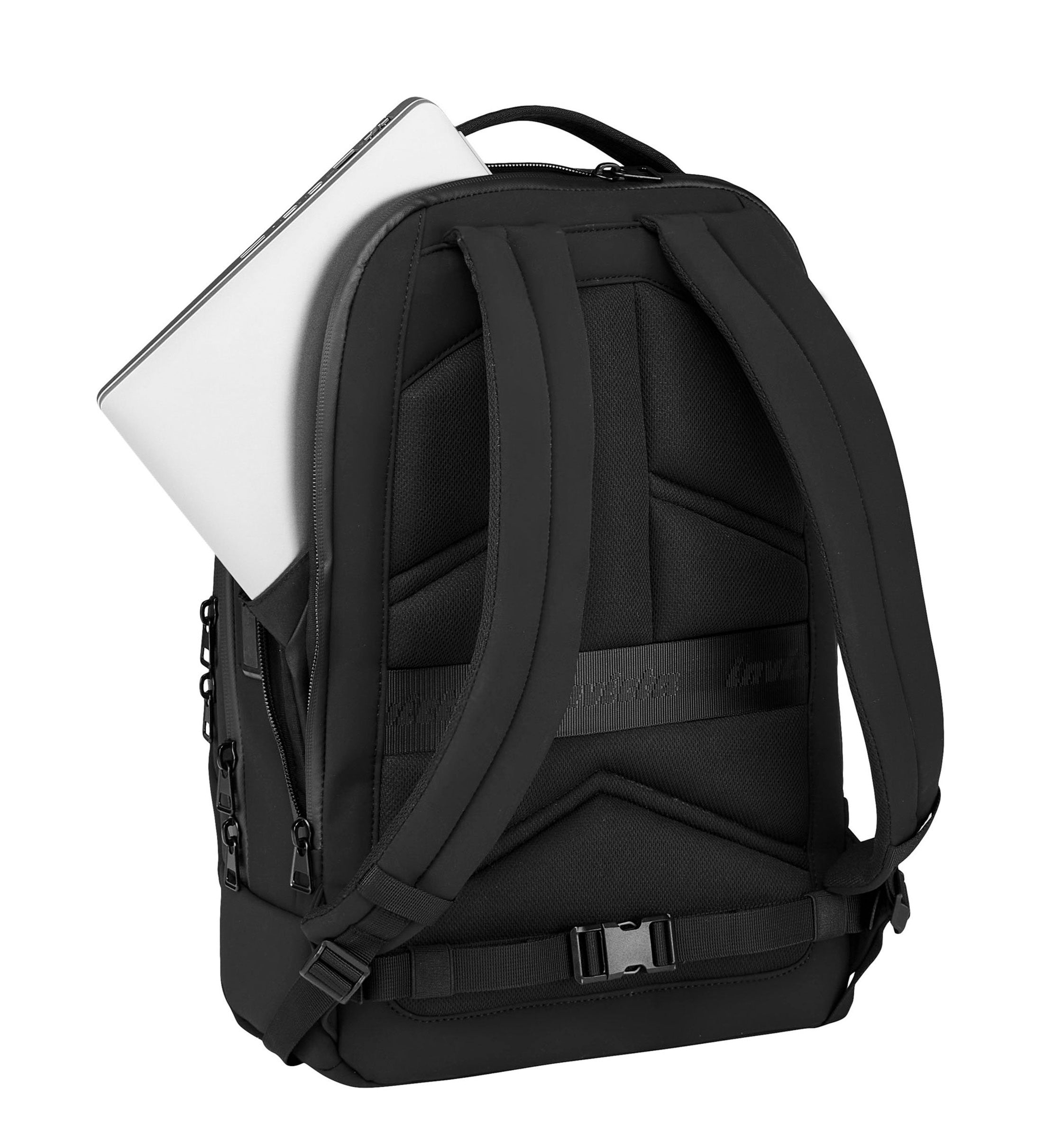 - Laptop pocket with separate access MAX 15,6” (38x26x2cm). Side external pockets for bottle. Tablet pocket. Phone pocket. Sunglasses pocket