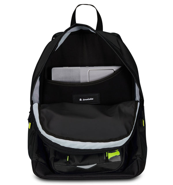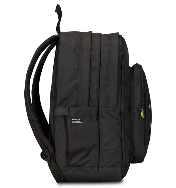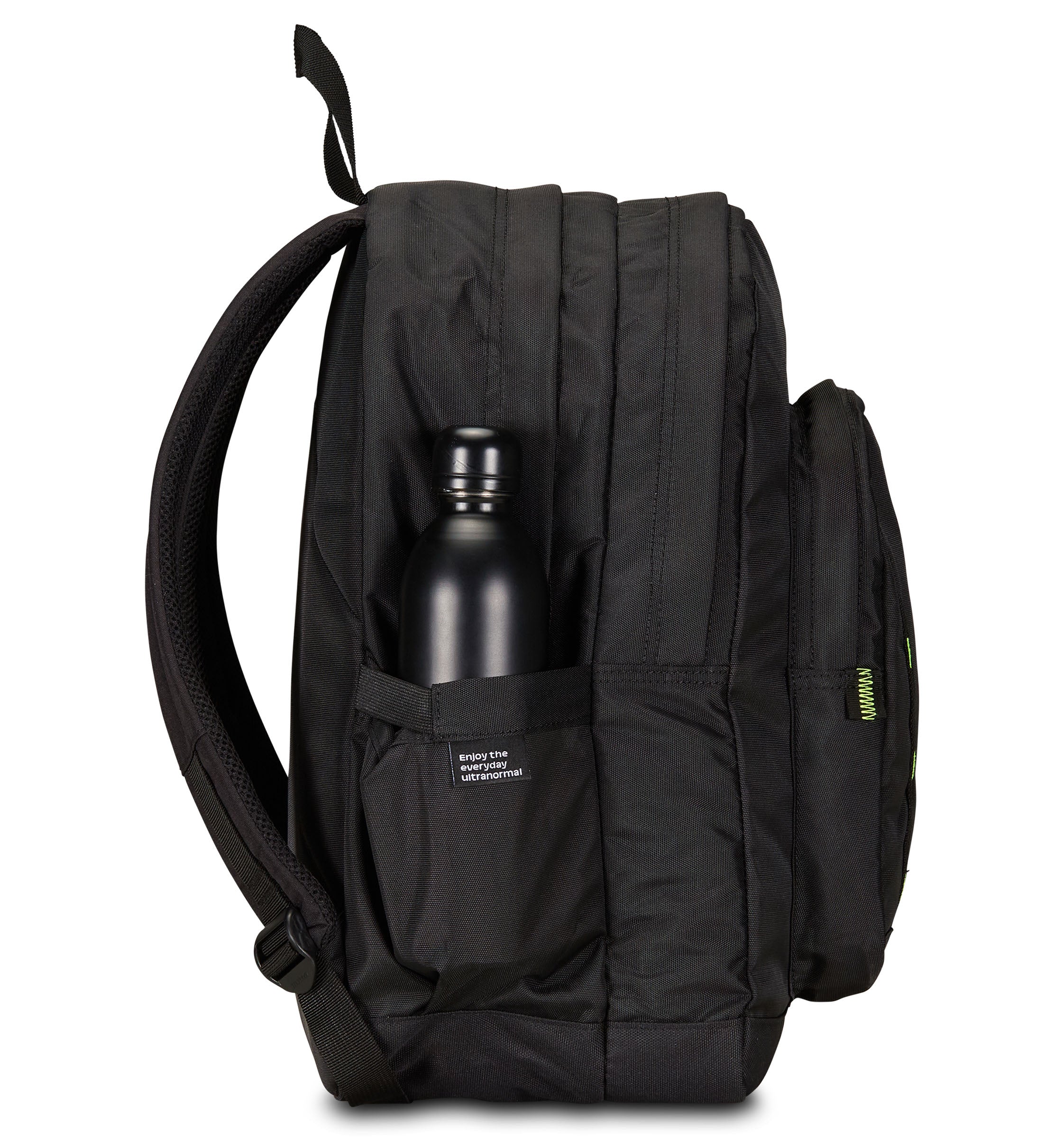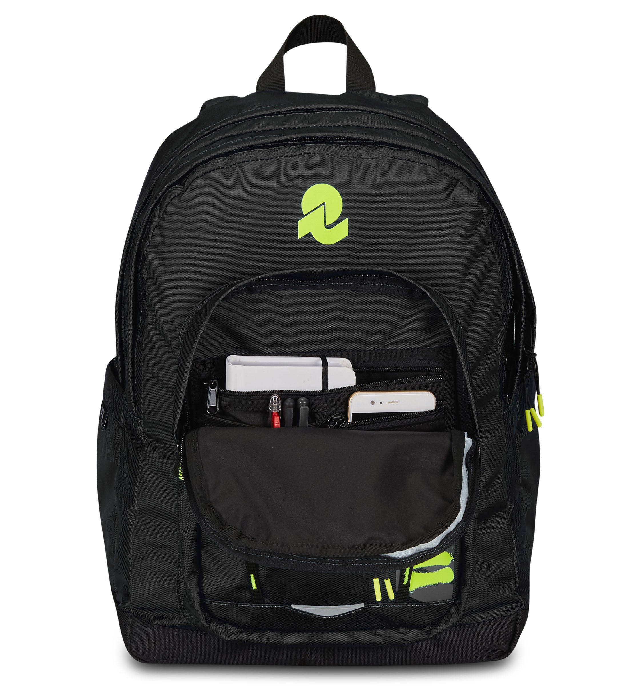 - Double frontal pocket, utility pocket with organizer, inner laptop pocket, side pocket for bottle.
