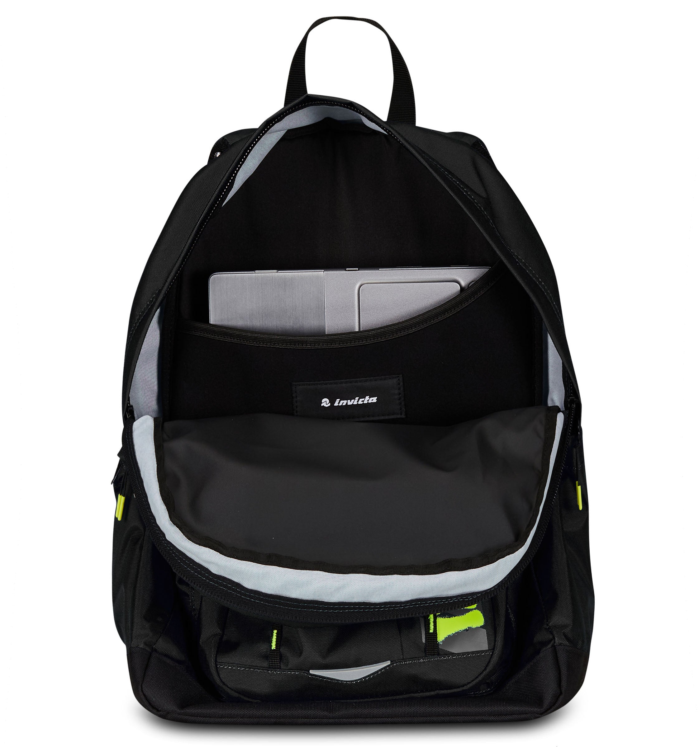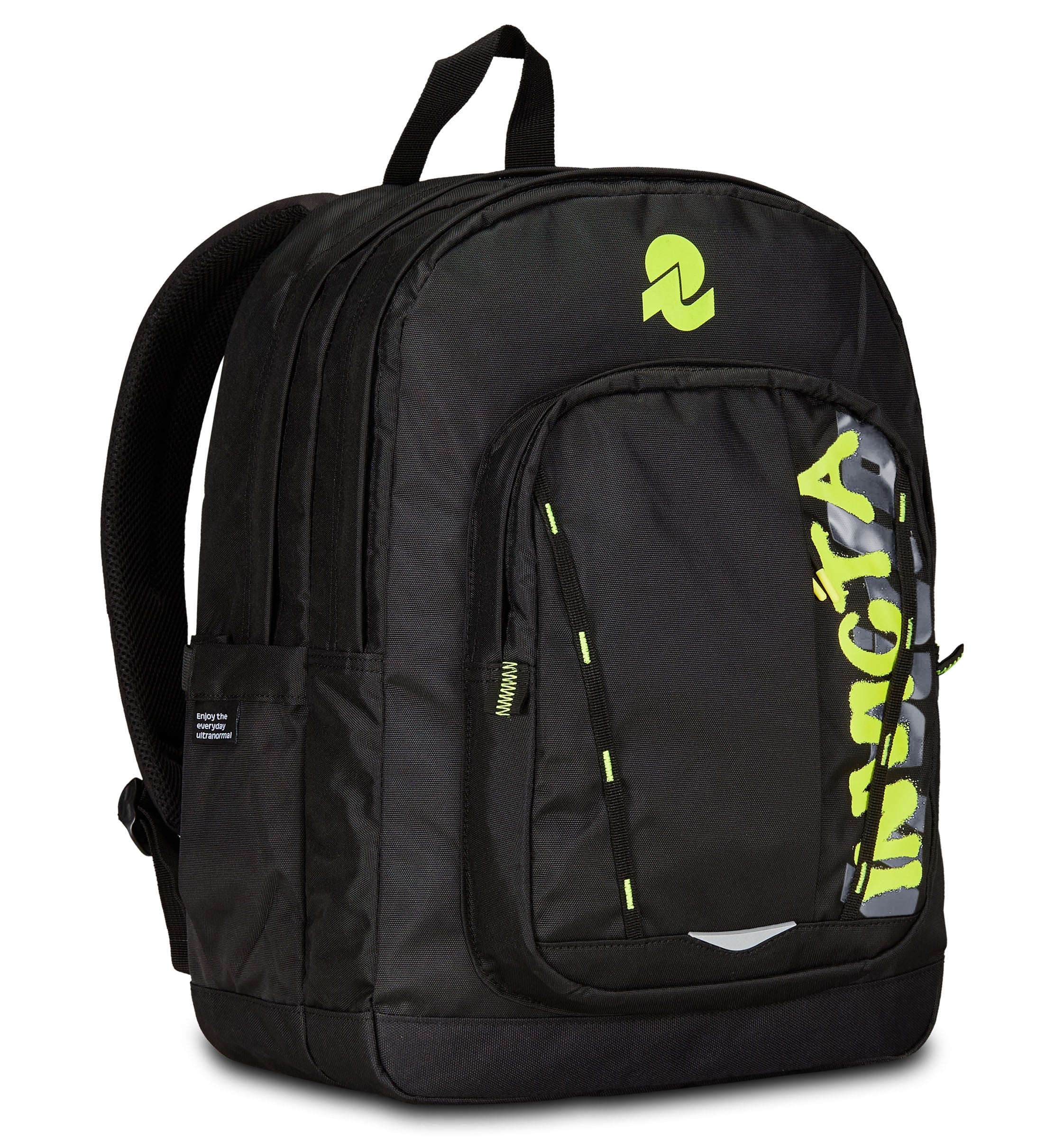 - Reinforced bottom, double compartment. Double frontal pocket, zipper puller with loop, high definition flag label on side pocket. Frontal webbing application with details in contrast color, frontal reflective insert. PHOTOCHROMIC LOGO: the colour of the screen printing changes in sunlight from yellow to green color.