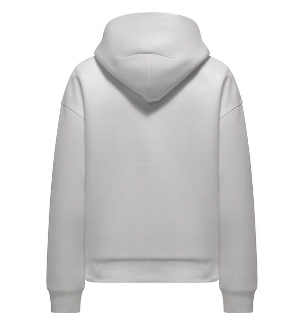 Il cappuccio fisso offre protezione extra quando necessario, mentre la tasca frontale a marsupio fornisce uno spazio pratico per riporre piccoli oggetti essenziali. La silhouette minimalista e le cuciture precise rendono questa felpa una scelta versatile, adatta per essere abbinata a leggings, jeans o joggers.