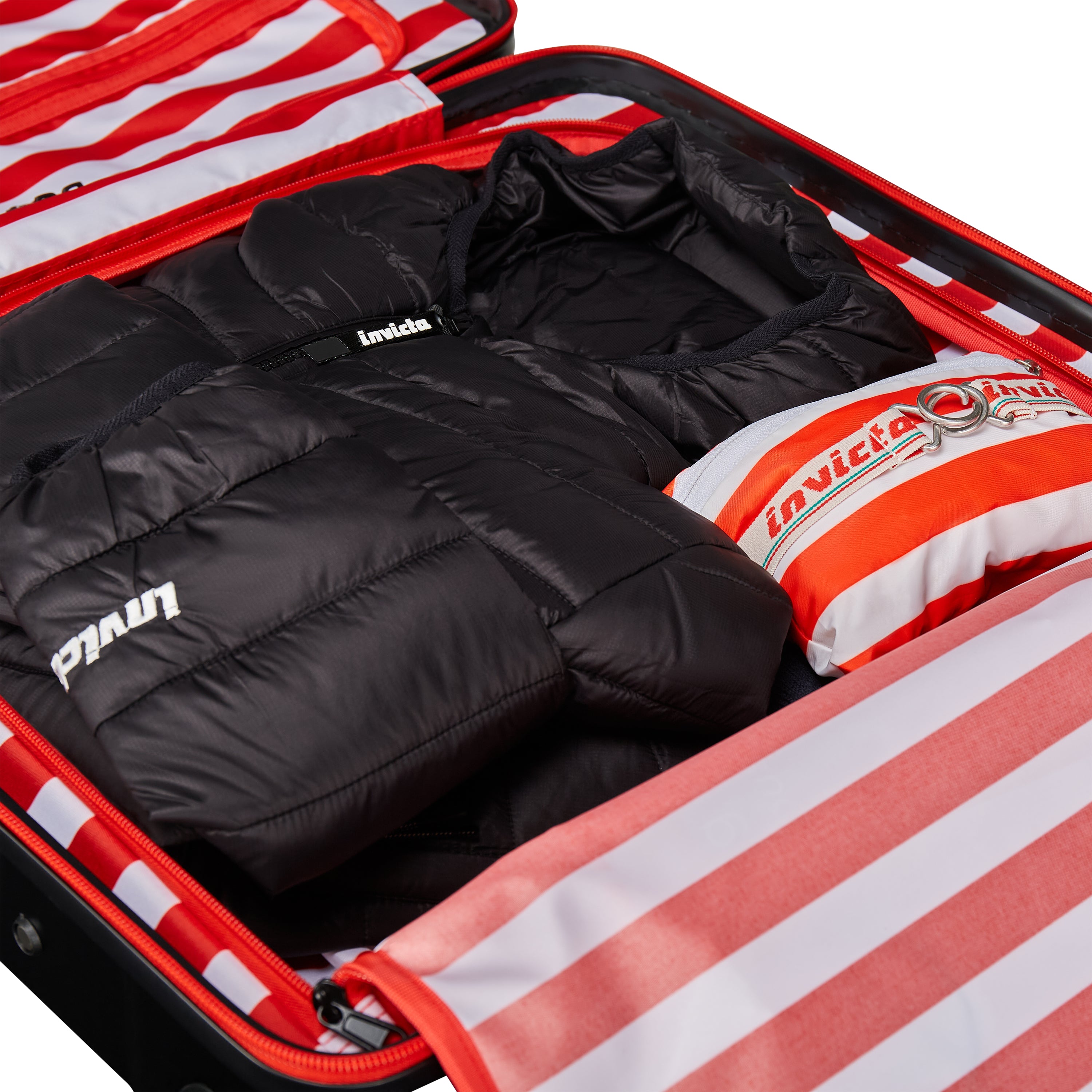 Organizzazione interna ideale per indumenti ed accessori, tasche interne porta oggetti e documenti.