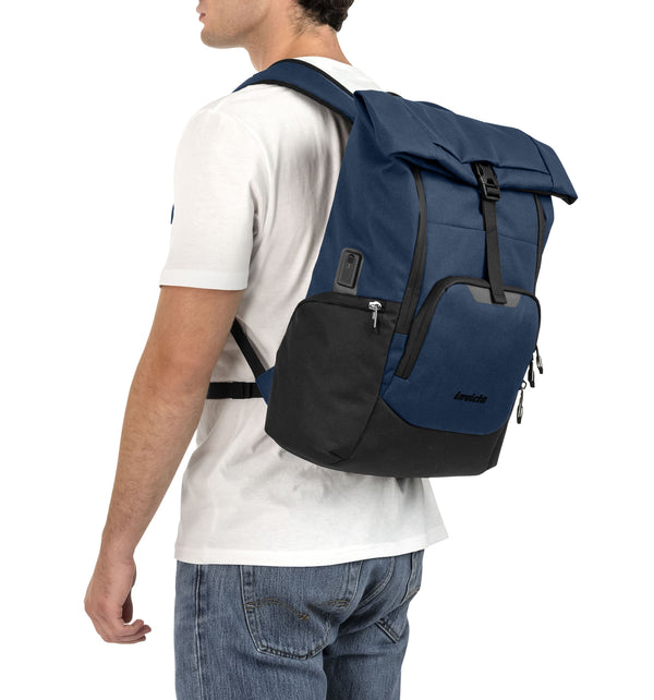 L’Invict-Act Fold è uno zaino roll-top con fondo rinforzato e una capacità di 24 litri. È dotato di una pratica apertura aggiuntiva frontale, ha uno scomparto per PC fino a 15,6”, tasche per tablet, borraccia, smartphone, occhiali e accessori. Permette inoltre la ricarica dei device tramite porta USB laterale. Ideale per muoversi in città, è anche alloggiabile sul trolley tramite l’apposito nastro.