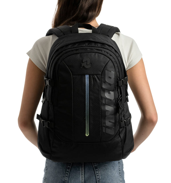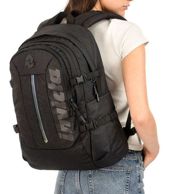 Dotato di LED frontale incorporato, l’Invict-Act Plus Led è uno zaino doppio scomparto con fondo rinforzato, che offre un’ottima distribuzione degli spazi. Con tasca interna per PC fino a 14”, due tasche laterali per la borraccia e una tasca interna con organizer per penne, agende e piccoli accessori, Invict-Act Plus, realizzato in poliestere riciclato e certificato GRS, è il giusto mix tra spazio e praticità, ideale per tutti gli spostamenti quotidiani.